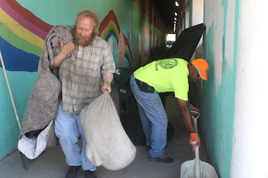 An "off-street cleaning" at the underpass, directed by Streets and Sanitation employees, effectively evacuated a number of transient men on June 6, but many have since returned. With the pitched barriers currently in various stages of development, the area is still used as an encampment, as it has been for about a decade.