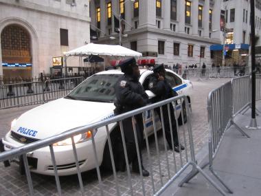 The issue of the Wall Street barricades has come up at recent community meetings, and NYPD officers have repeatedly said that the security barriers must remain in place because the protesters do not give advance notice of their marches and routes.