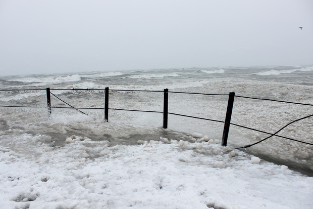 "We thought it would be crazy," said Mary Nowak, 24, who with her husband, Nick, 25, pushed through harsh snow drifts near the pier at Tobey Prinz Beach. But Nowak said she didn't think "it would be this crazy" as the winter storm dumped snow and produced winds up to 40 mph.