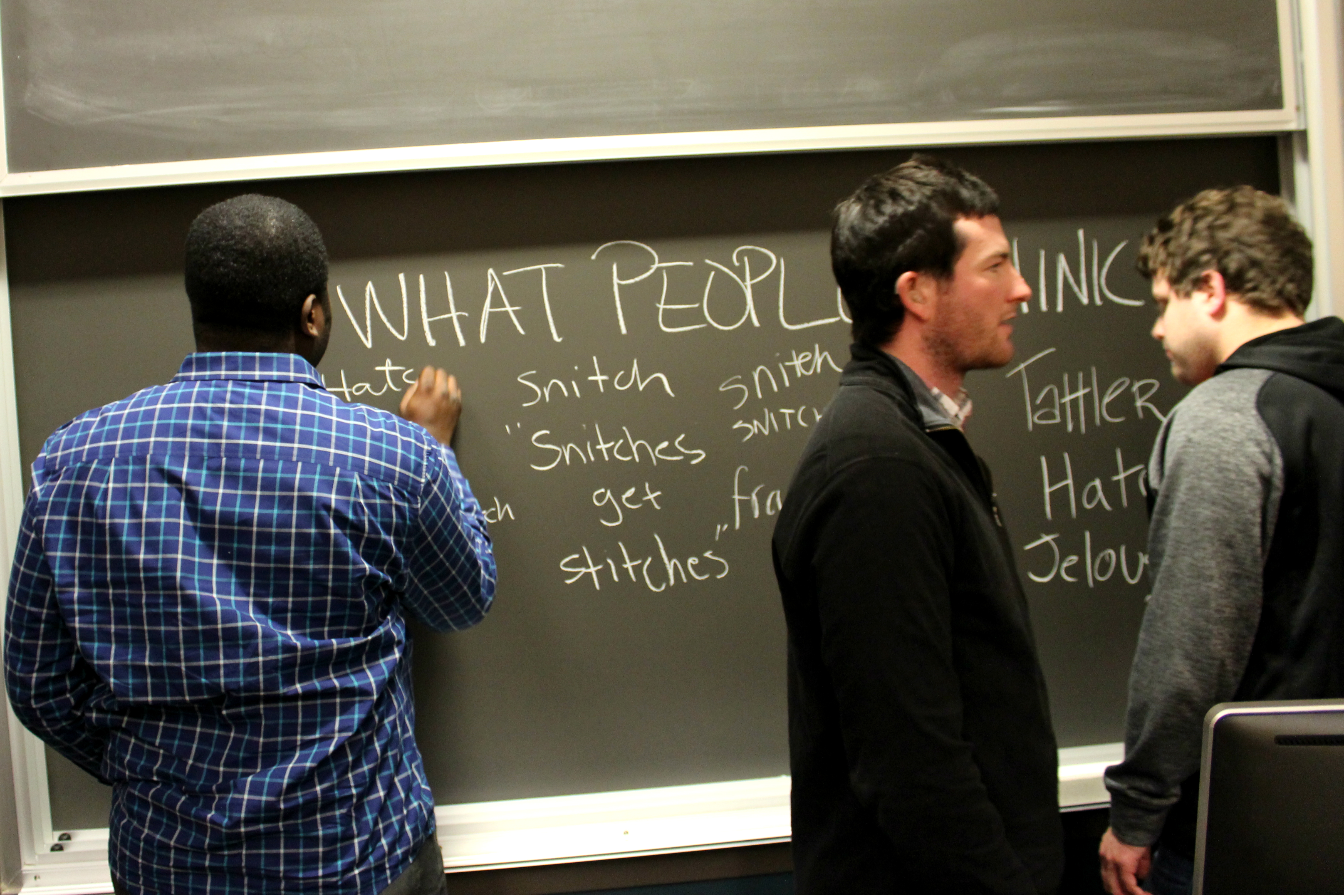 Most students wrote “snitch.” One wrote “hater.” Another wrote “rat.”