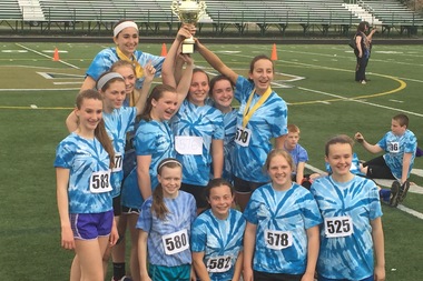 Claire Anderson, Mary Kate Borner, Summer Roche and Mary Claire Weber have been running together since fourth grade. The fifth member of the team, Gabriella O'Hehir, joined in fifth grade.