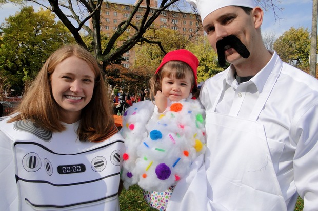 Expecting a child, Conley dressed as a bun in the oven. Her husband, Ben Conley, played the part of a baker and their two-year-old daughter, Alice, was a muffin.