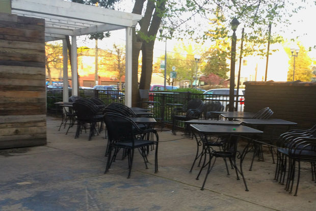 One of Lincoln Square's prime outdoor patios remains empty. [DNAinfo/Patty Wetli]