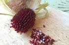 To make "coffee," look for plants that have borne fruit. The tiny balls are also barbed — this is one seriously armored plant — but contain seeds that can be dried and roasted similar to coffee beans.