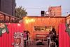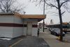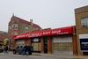 The bright red former Sam's Red Hots boards were removed and now show white and brown siding.