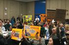 Tenants also described their living conditions for the past nine months. Mary Ann Siwek, 64, said her apartment at 170 E. Second St. is a “war zone,” with constant pounding and drilling from construction work.