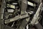Officials are still looking for the man who attempted to rob the deli. A photo released by police of the suspect pointing a gun inside the store shows him wearing a black coat and a face mask decorated with a yellow skull.