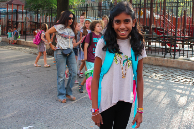 Arianna Alexander, 5, rocked a cute hairstyle on her first day of school at P.S. 307 in Vinegar Hill.